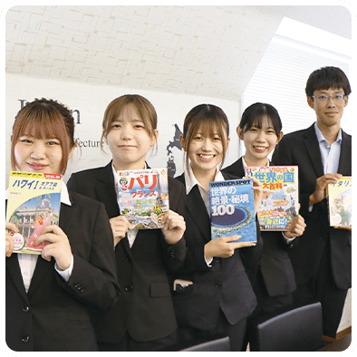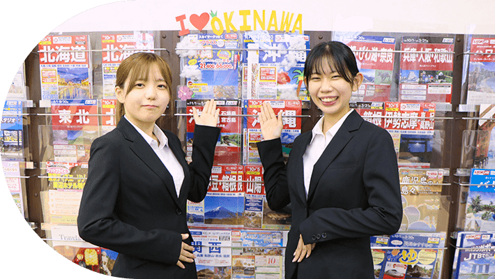 憧れだった旅行会社のカウンターで勤務しています。海外ツアーの販売を担当しており、毎日忙しいながらも新しい発見の連続で、充実した日々を過ごしています。旅行接客業務の授業で学んだポップ作りのスキルは、入社後すぐに活かすことができました。
