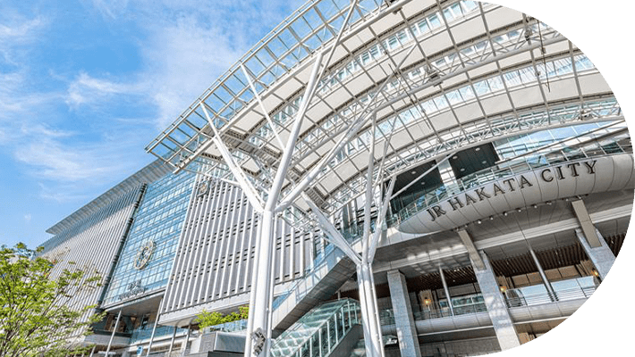 - 市営地下鉄「天神駅」乗車「博多駅」下車、博多口より駅前通り一筋目を左へ100m (徒歩3分)